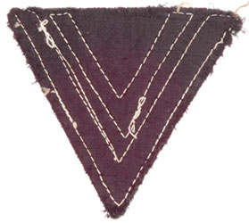Wehrmacht Obergefreiter Rank Chevron: Green wool and black twill base, 80 mm sides, with 9 mm diamond pattern aluminum tress, pre war example, light wear.