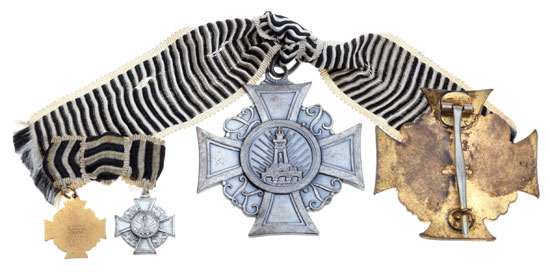 WW1 Wesen: Two medals and miniatures (missing pin), 1st and 2nd class, 44 mm, moderate wear.